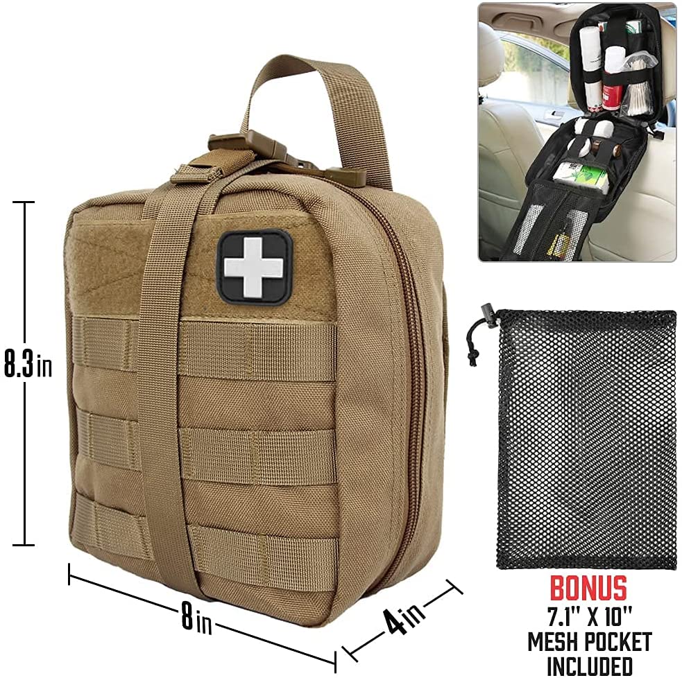 Khaki-taktisen sotilaslääketieteellisen ensiapupussin käyttö sisältää Punaisen Ristin: voi olla hyödyllinen ampumaradalla tai koota osana taktista kuormaa, ja sitä voivat käyttää sotilashenkilöstö, EMT, poliisi ja palomiehet. Tarjoamme 30 päivän rahat takaisin laatutakuun.